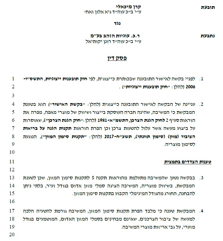 ברכות למפעל “עוגיות הזהב” ולעורך הדין רונן יקותיאל על פסק הדין הזה.